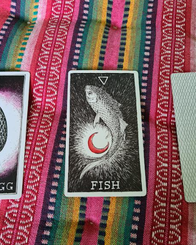 Fisken älskar att följa med strömmen, fisken älskar rörelse, rörelse och mer rörelse. Denna livsstil kan vara kul ett tag men leder ofta till osäkerhet och dåliga relationer. Fisken ser bara alla andra möjligheter och missar att ha ett mål och går därför lätt vilse och saknar visioner. Om detta kort var ditt så behöver du kanske grunda dig lite och sakta ner. Hitta lugnet i månens kraft och låt henne lugna din oroliga själ. Börja med att sätta upp mål för dig själv och fokusera på ett steg i taget. Förlora dig inte i strömmen