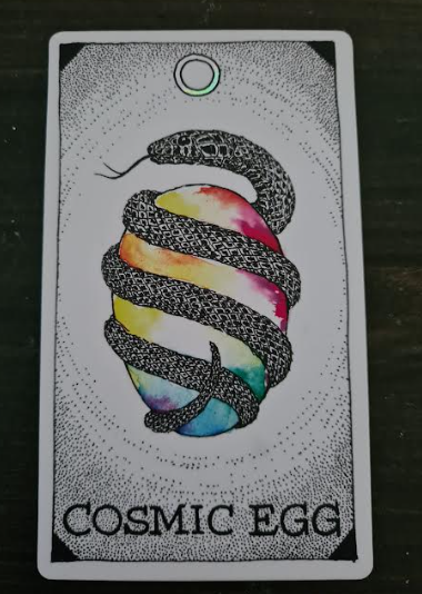 Hög nummer två kom med det kosmiska ägget. Det allra sista kortet i leken. Målet på resan. Utvecklandet av kosmisk medvetenhet. Hit når man först efter en lång resa. Ibland kan målet te sig så långt bort, ouppnåligt nästan. Detta kortet påminner om att du är på rätt väg. Energin finns redan i väven. Det har den varit sedan innan du föddes. Meditera på att öppna ditt kronchakra så att du du kan lysa som tusentals solar. Resan är snart klar. Men den slutar inte…